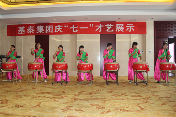 此次才藝展示,節(jié)目的內容豐富,形式多樣,有氣勢磅礴的大合唱《沒有共產黨,就沒有新中國》,有獨具一格的薩克斯獨奏,有聲情并茂的詩朗誦(《我的祖國》),有獨具魅力的男、女聲獨唱、男女對唱,有鼓動人心的鼓樂表演,手語舞《感恩的心》等。其中鼓樂舞《鼓動基泰》,讓人在快速躍動的節(jié)奏中,感受基泰精神,感受生命的激情,給人留下深刻的印象。