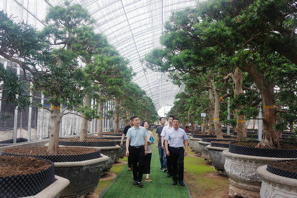 蘇亞文一行首先來到基泰都市新農(nóng)業(yè)優(yōu)良苗木花卉種植基地,考察了日本進口羅漢松種植情況,并對集團聚焦國際珍稀花木繁育,開展景觀應用研究表示肯定。