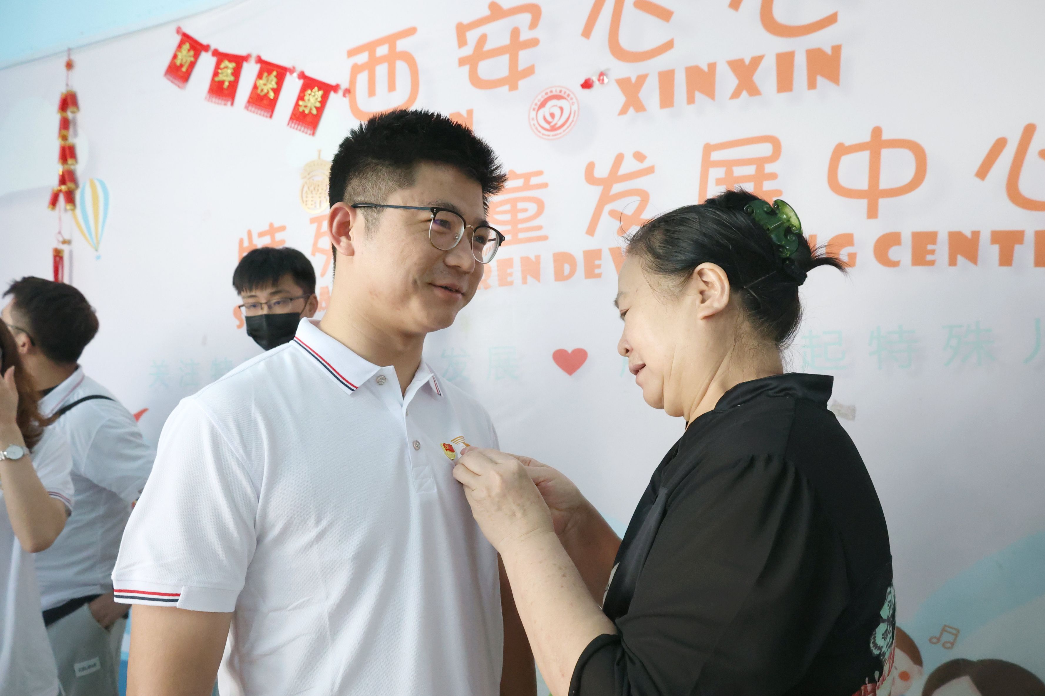 "心心”負(fù)責(zé)人張媽媽為志愿者伙伴們佩戴“公益之星”勛章,大家感受到了滿滿的榮譽(yù)感和儀式感。